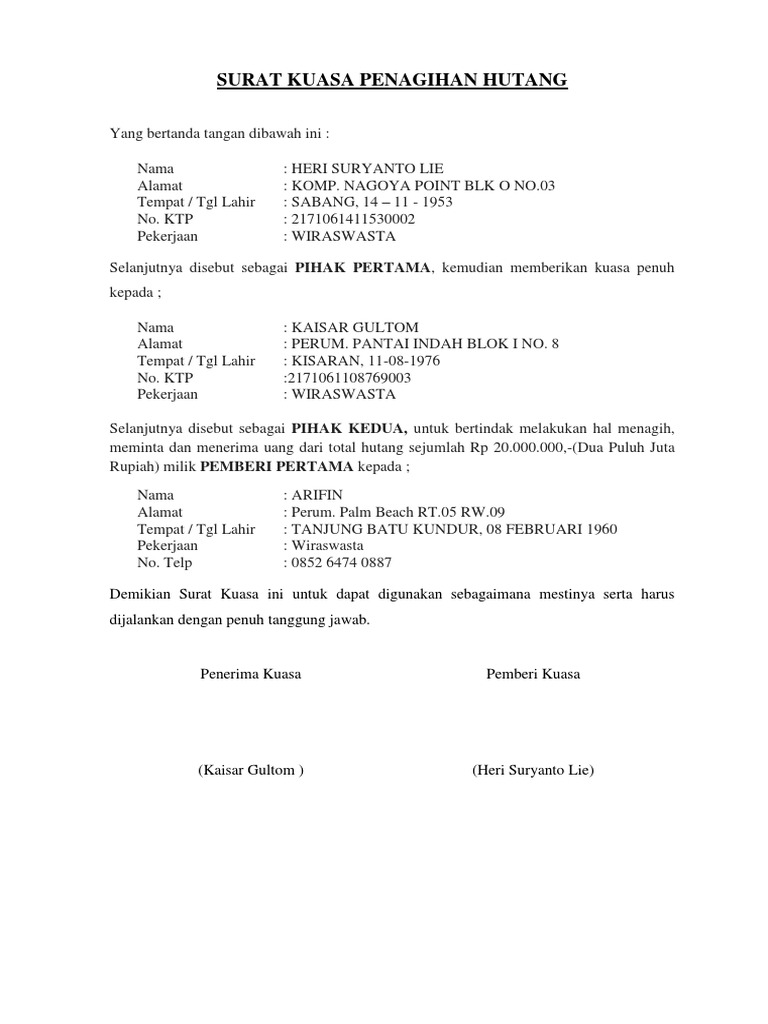 Contoh Surat Kuasa Penagihan Hutang from imgv2-2-f.scribdassets.com Check spelling or type a new query. Contoh surat kuasa penagihan hutang. Maybe you would like to learn more about one of these? We did not find results for: